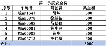 以下是公司兩個(gè)季度節(jié)油獎(jiǎng)及安全獎(jiǎng)人員名單: