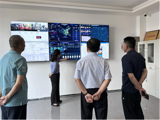 調(diào)研團(tuán)隊(duì)領(lǐng)導(dǎo)參觀了我司多功能指揮中心、生產(chǎn)中控室、物流調(diào)度中心、產(chǎn)品研發(fā)中心、生產(chǎn)現(xiàn)場(chǎng)等廠區(qū)廠貌,進(jìn)行了實(shí)地調(diào)研指導(dǎo),物流事業(yè)部副總裁李思華向大家深入淺出的講述了黃荊信息科技積極探索“物聯(lián)網(wǎng)+”、以服務(wù)為中心的產(chǎn)業(yè)一體化智能化的貨運(yùn)網(wǎng)管理模式、物聯(lián)網(wǎng)監(jiān)管系統(tǒng)、大數(shù)據(jù)分析等前沿?cái)?shù)字化技術(shù)的部署與應(yīng)用。各位領(lǐng)導(dǎo)對(duì)我司工廠智慧化的管理給予高度認(rèn)可。